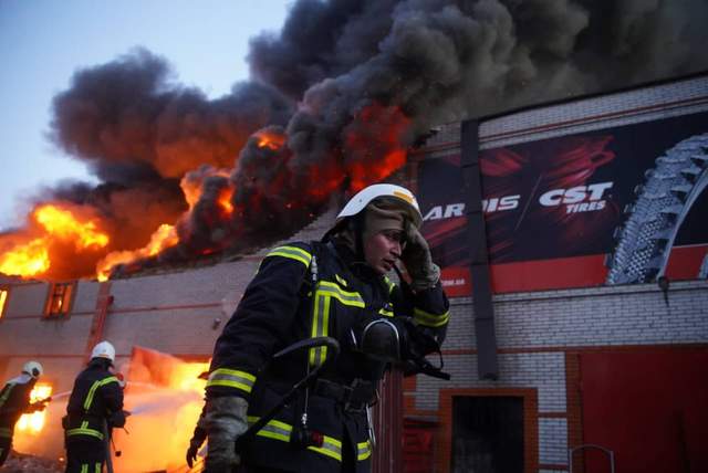 Ще один виклик надійшов щодо пожежі на складі. Площа займання становить 10 000 квадратних метрів. Є загроза вибуху снаряду, через це вогонь гасять із безпечної відстані. Ліквідація пожежі поки що триває. За попередньою інформацією, загинула 1 людина. На місці з вогнем борються 67 рятувальників та 15 одиниць пожежної техніки.