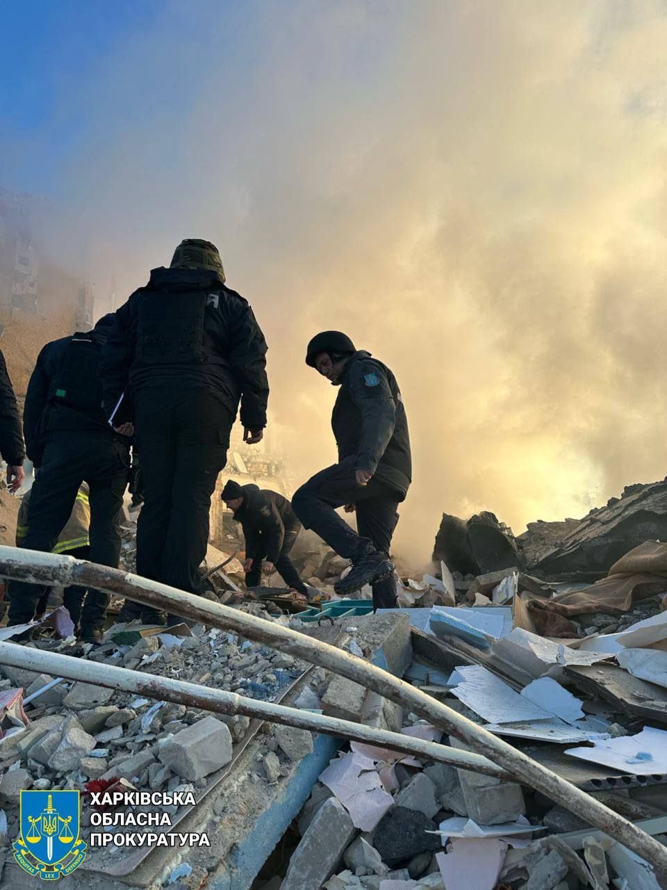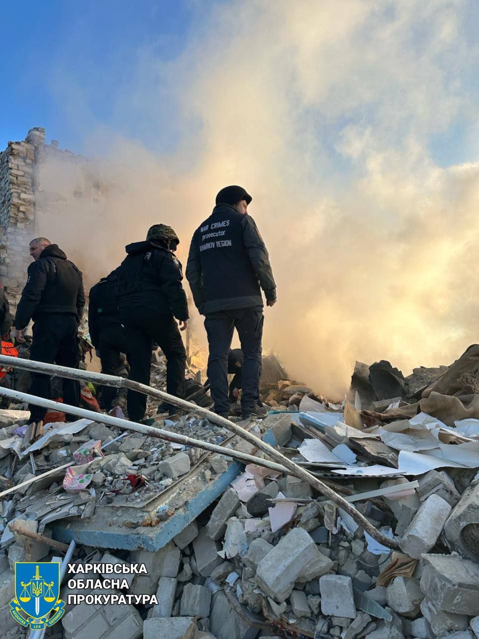 Оновлення. Станом на 22:00 17 лютого відомо про 5 постраждалих та 1 жертву. Поліція Харківської області повідомила пізно ввечері, що рятувальники дістали з-під завалів будинку труп жінки. Також правоохоронці поділилися кадрами.