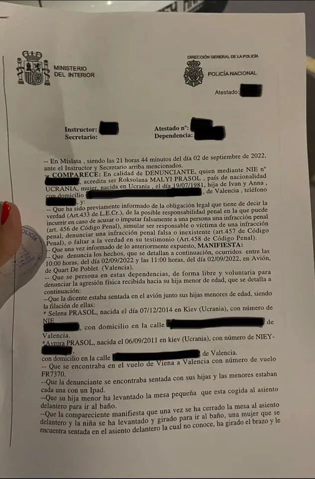 Після приземлення до літака прибув екіпаж цивільної гвардії Іспанії. Росіянку попросити вийти з речами, однак англійської вона не зрозуміла, тому попросила українку побути її перекладачем.