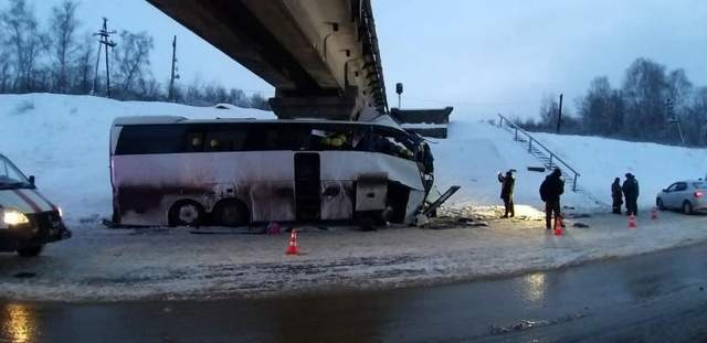 За даними, ЗМІ автобус в'їхав у залізничну опору. За різними даними, у салоні перебували 49 або 50 людей.