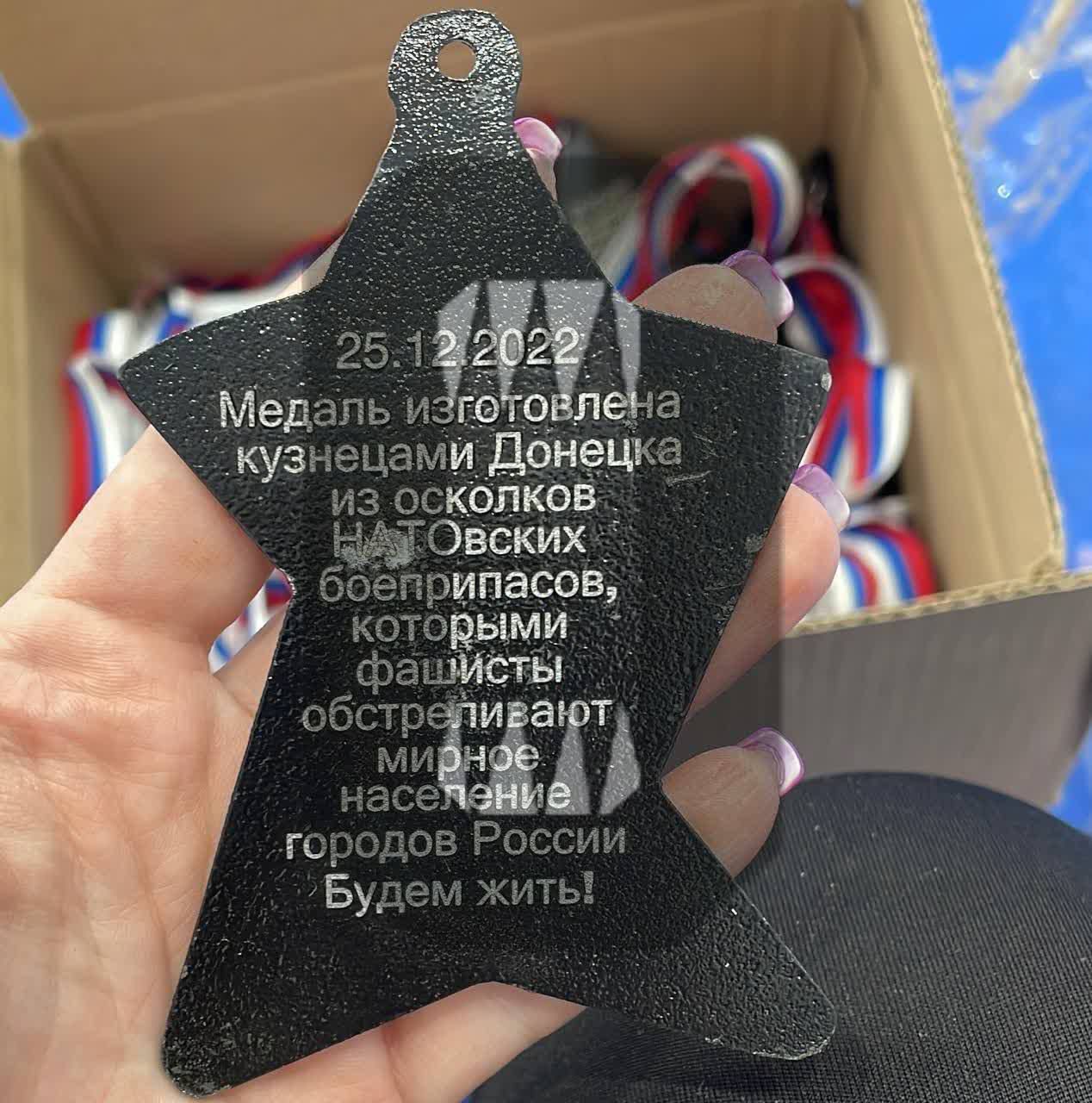 Як заявили організатори, ці медалі нібито виготовлені ковалями окупованого Донецька з "осколків НАТОвських боєприпасів", якими нібито обстрілюють "міста Росії". Одна фраза – суцільна нісенітниця у кожному слові. Ба більше, керівник клубу карате Костянтин Бєлий розповів, що ці медалі зробили з уламків HIMARS.
