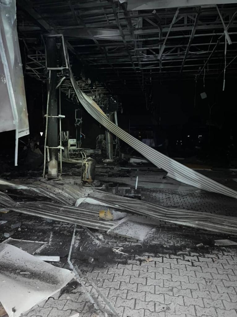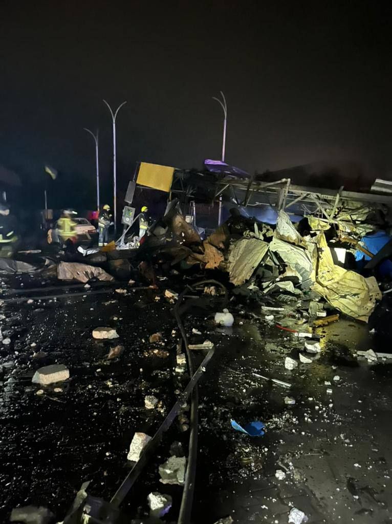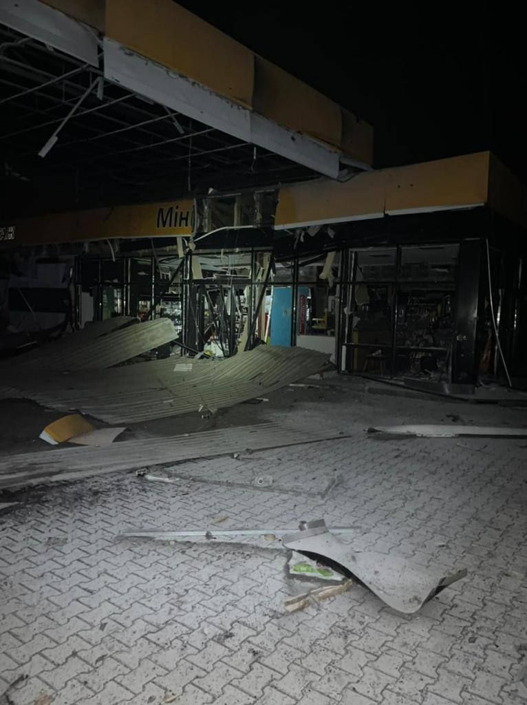 Російська ракета завдала серйозних руйнувань АЗС. Наприклад, внаслідок удару знищено комплекс будівель АЗС: автозаправочні колонки, автомийку, шиномонтаж та 2 автомобілі. Ще один автомобіль пошкоджено, частково зруйновано магазин та операторську.