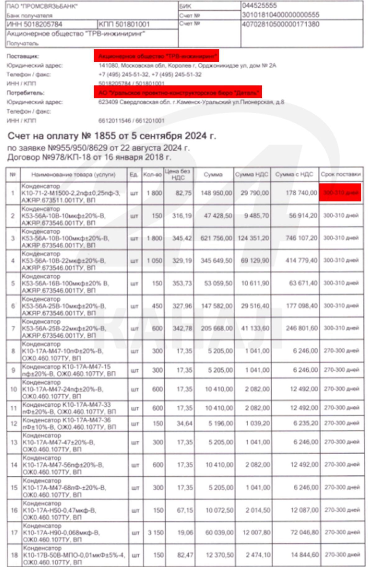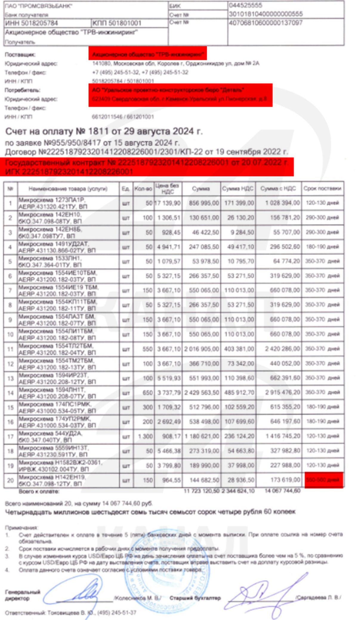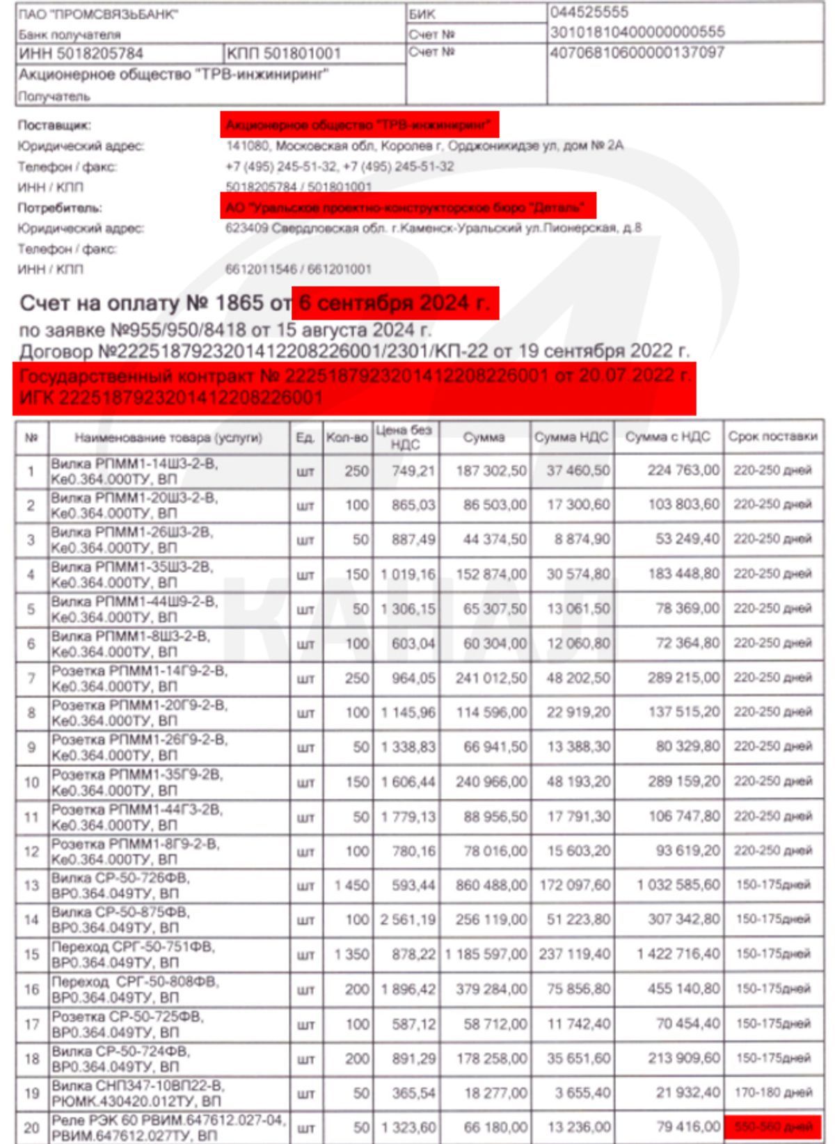 Дивіться фото документів про закупки "ТРВ-инжениринг" для УПКБ "Деталь" / Фото надані приватною розвідувальною компанією "Даллас":