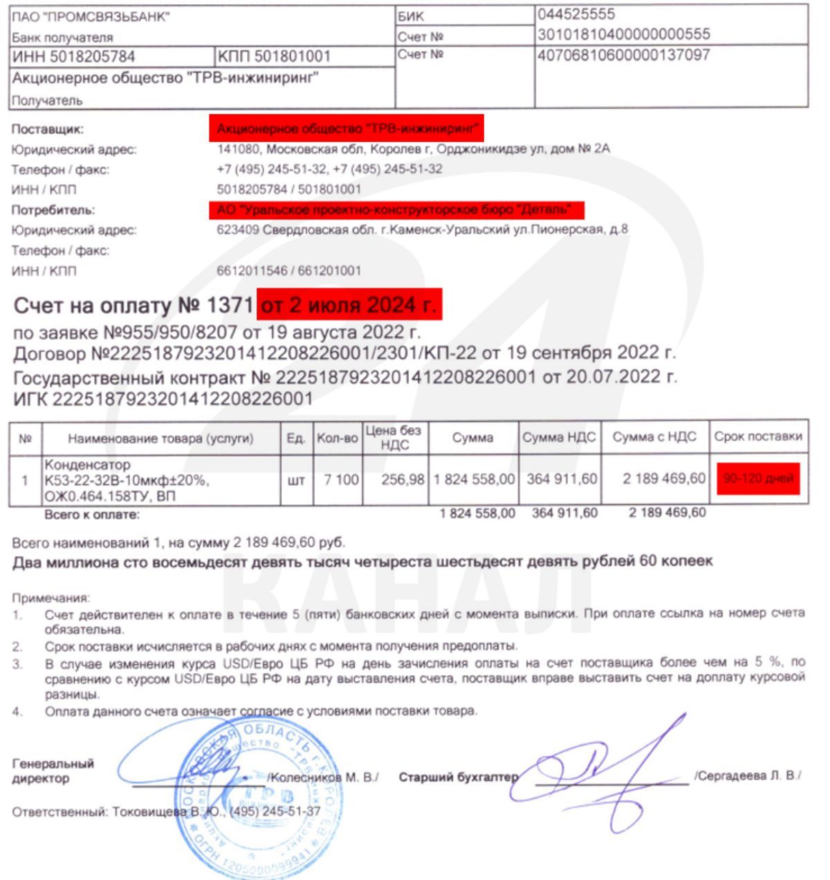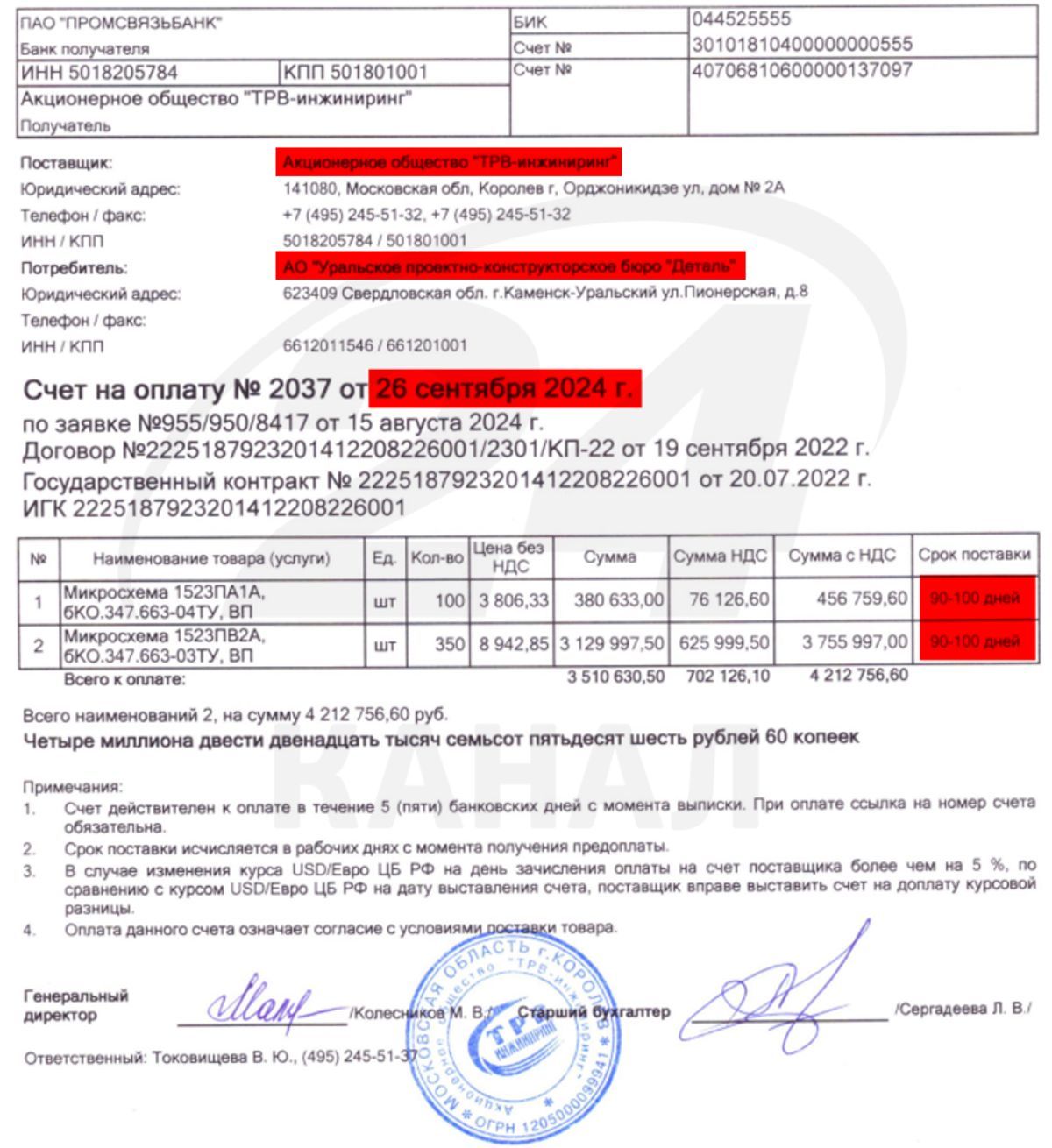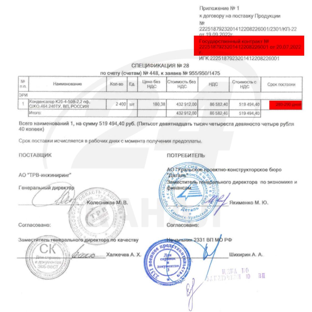 Дивіться фото документів про закупки "ТРВ-инжениринг" для УПКБ "Деталь" / Фото надані приватною розвідувальною компанією "Даллас":