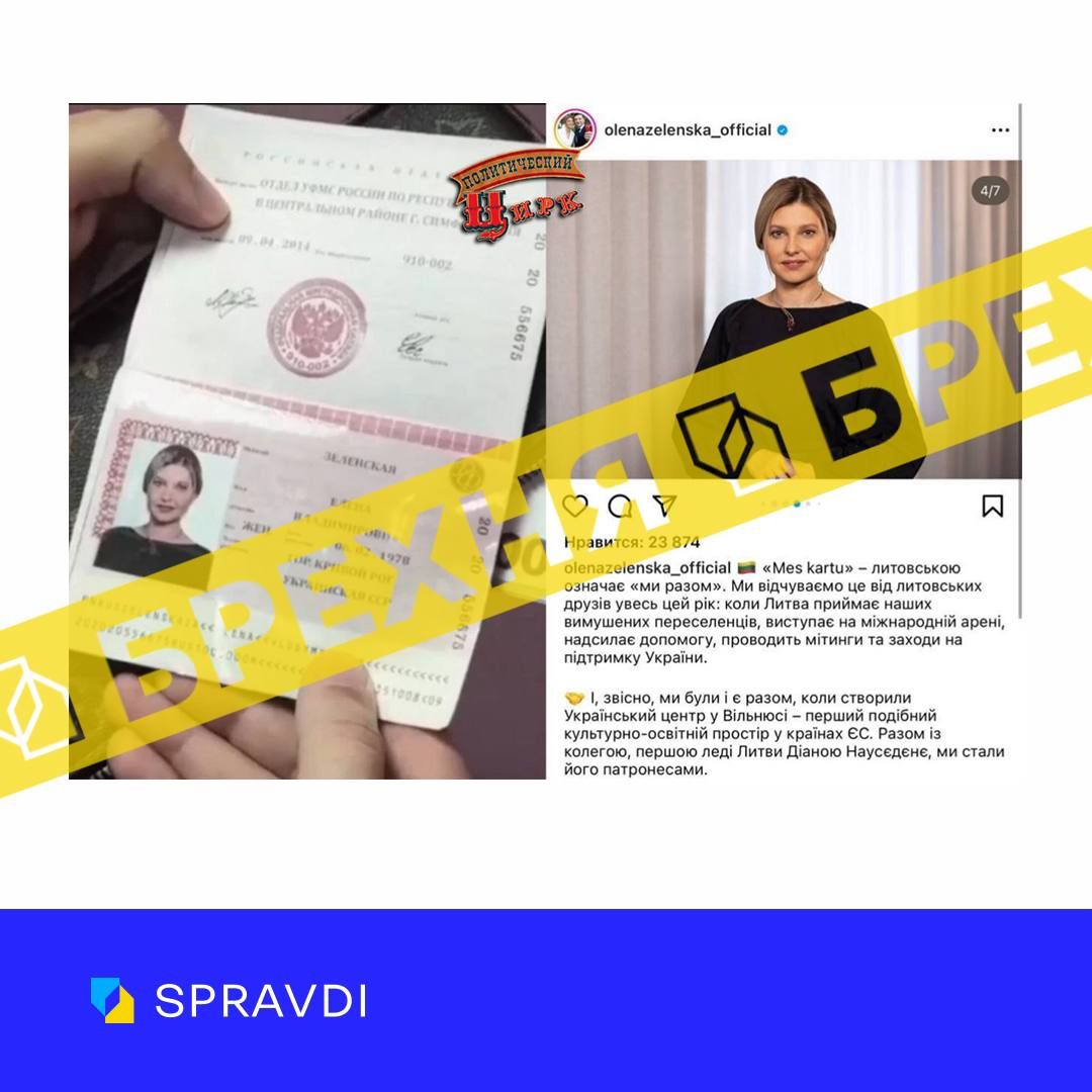 Так, росіяни полінувалися створити якомога достовірніший "паспорт" Зеленської. На поширеному пропагандистами зображенні видно, для фейкового документа використали фото Олени Зеленської з Instagram за 2023 рік. Водночас вони стверджують, що сам паспорт був виданий у 2014 році.