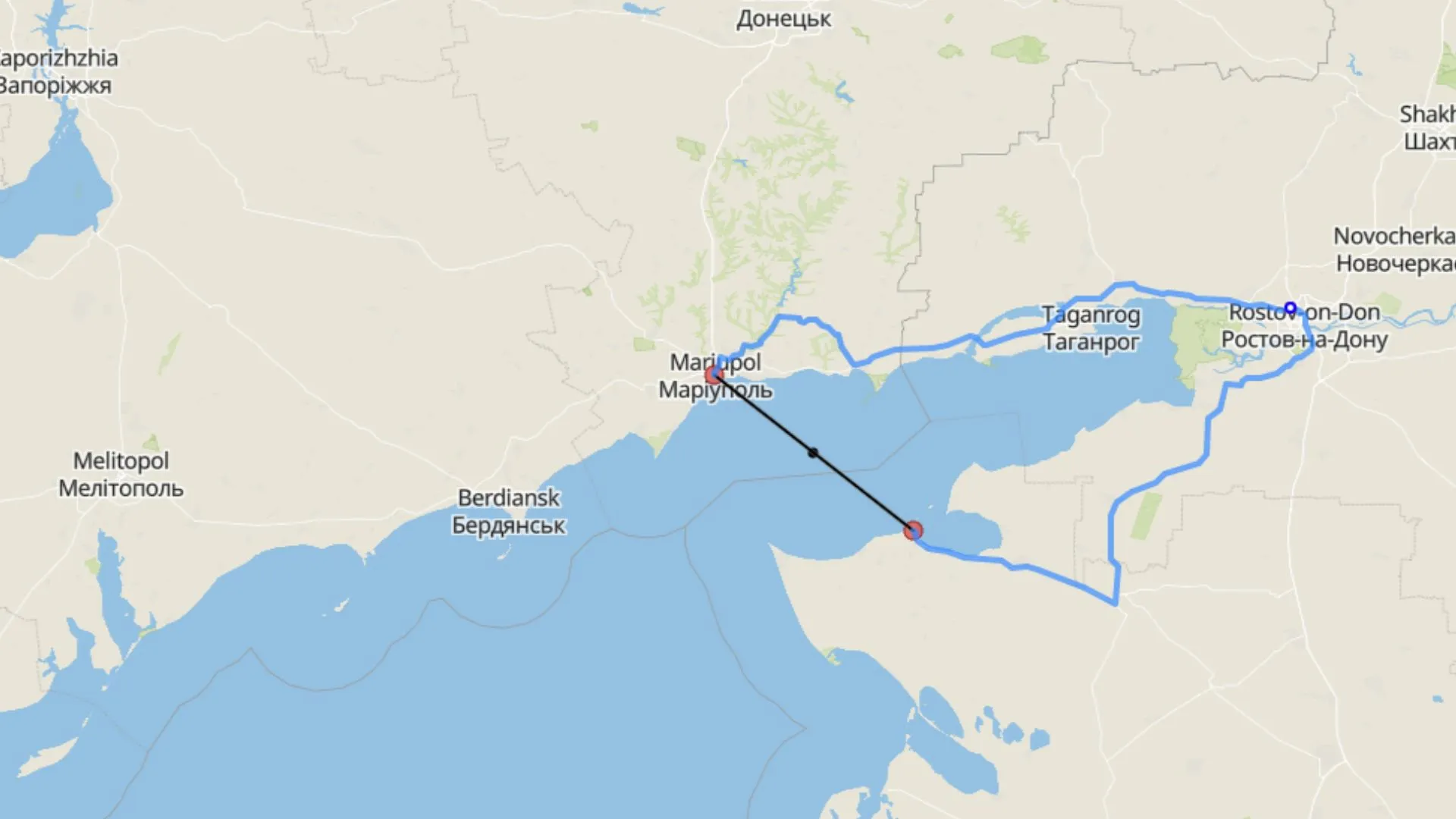 Відстань від Єйська до Маріуполя приблизно 70 кілометрів / Скриншот 24 Каналу
