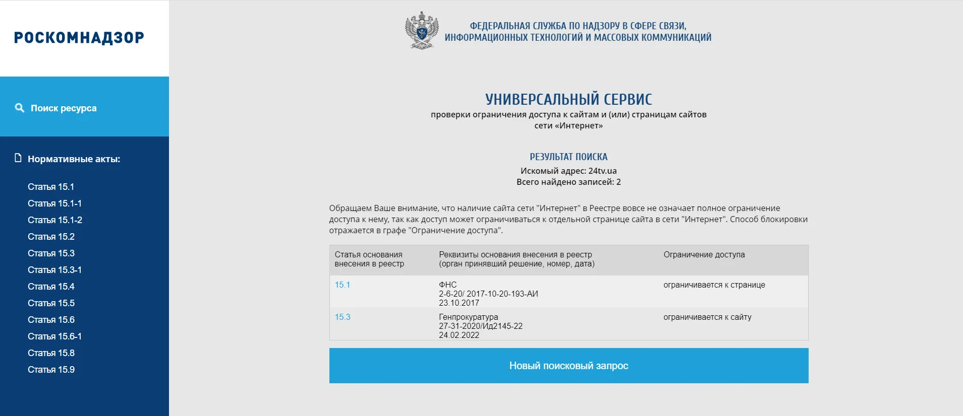 Росія заблокувала на своїй території 24 канал / Скриншот 24 каналу