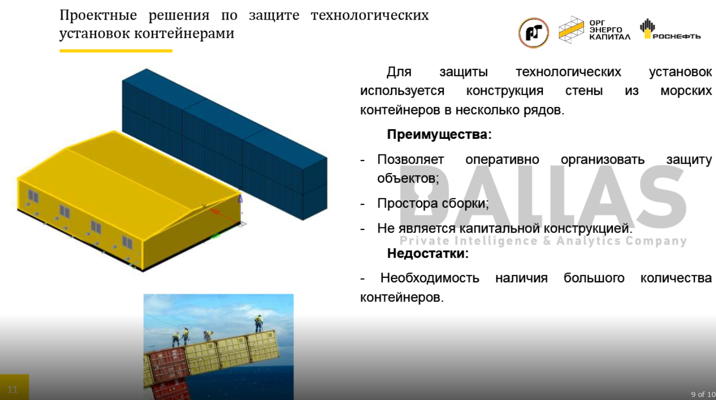 Загалом Роснефть пропонує вісім варіантів захисних конструкцій, створених із доступних матеріалів – від тросів і риштувань до контейнерів і бетонних панелей.