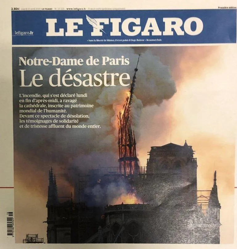 "Катастрофа Нотр-Даму", – пише французька газета Le Figaro. У виданні додали, що це видовище зібрало смуток і співчуття усього світу.