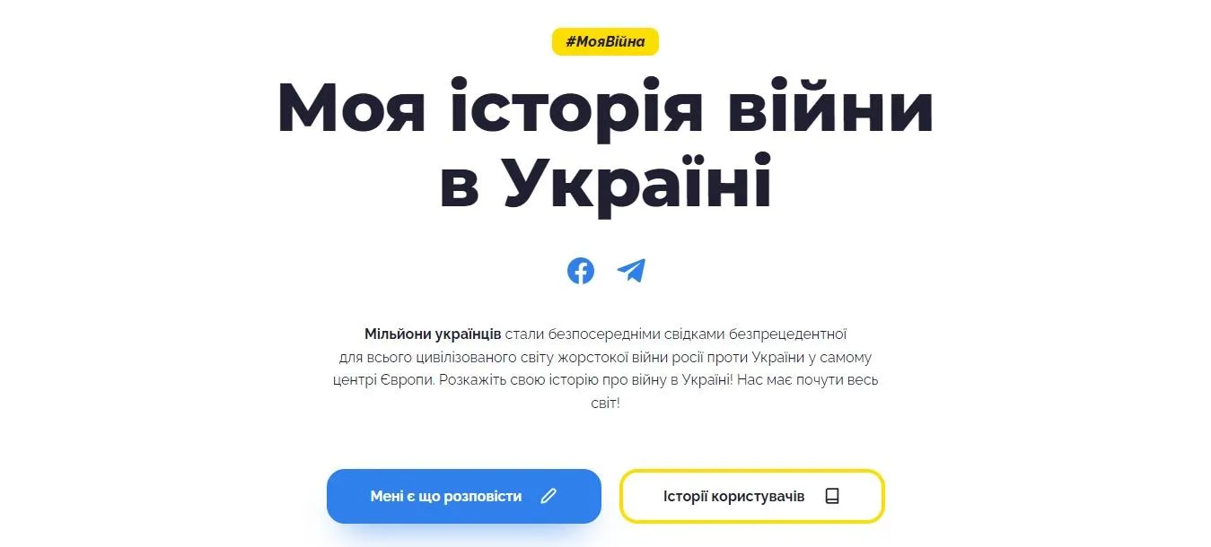 Мільйони українців стали безпосередніми свідками безпрецедентної для всього цивілізованого світу жорстокої війни росії проти України у самому центрі Європи. Розкажіть свою історію про війну в Україні! Нас має почути весь світ!