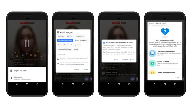 Этим занимаются специалисты, имеющие специальную подготовку по вопросам психического здоровья. Эту программу начали после нескольких громких случаев попыток самоубийств, которые транслировались на Facebook Live.
