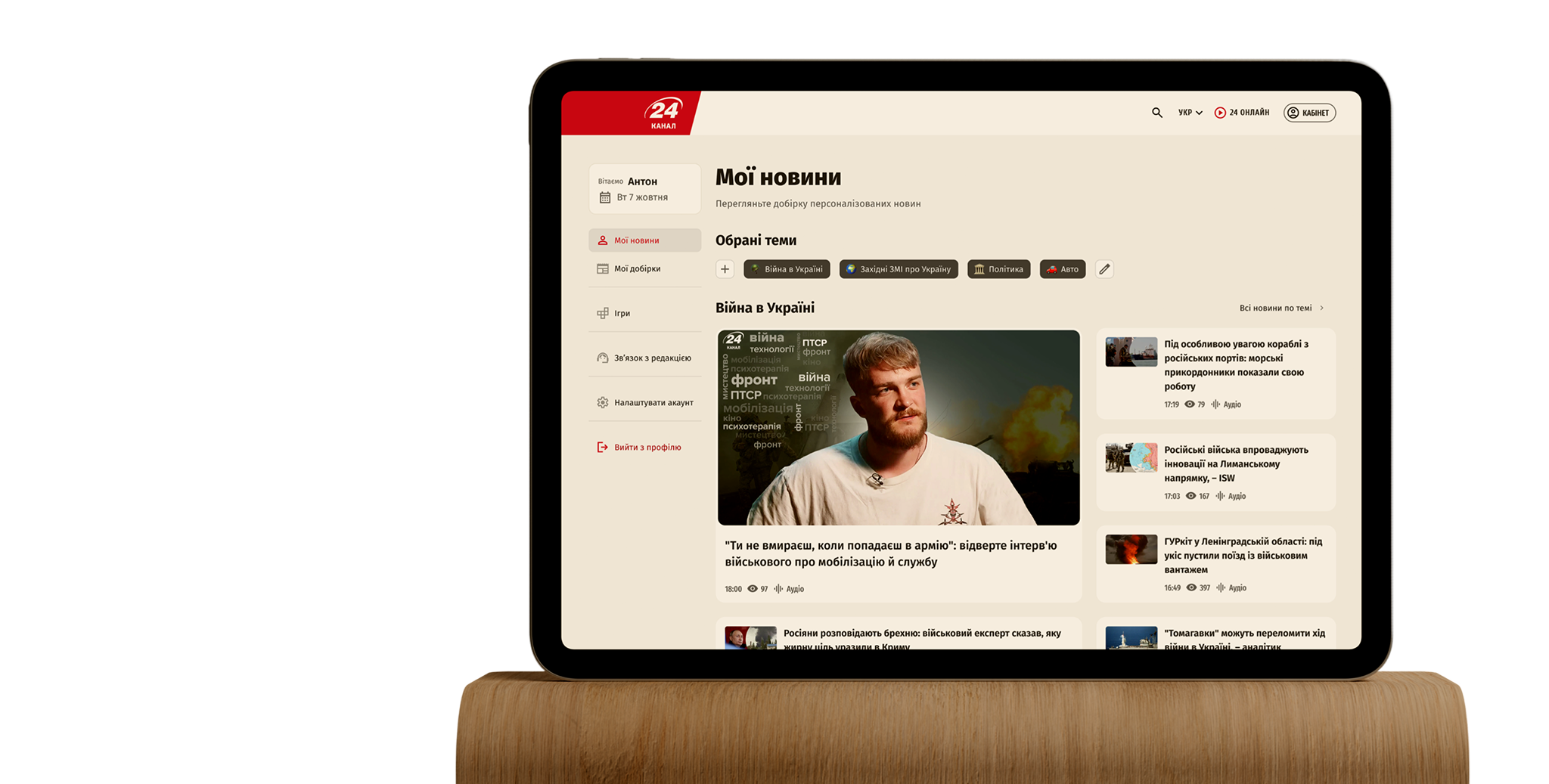 Настройте свою ленту новостей: 24 Канал запустил персональные кабинеты для читателей