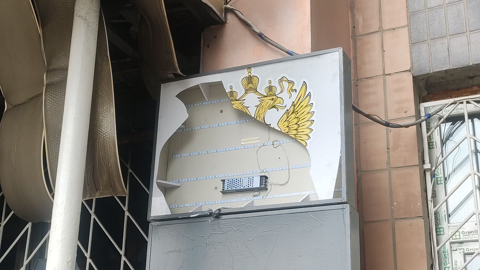 Россияне также сменили таблички на входе, а на дверях ручкой исправили надпись "вихід" на "выход".