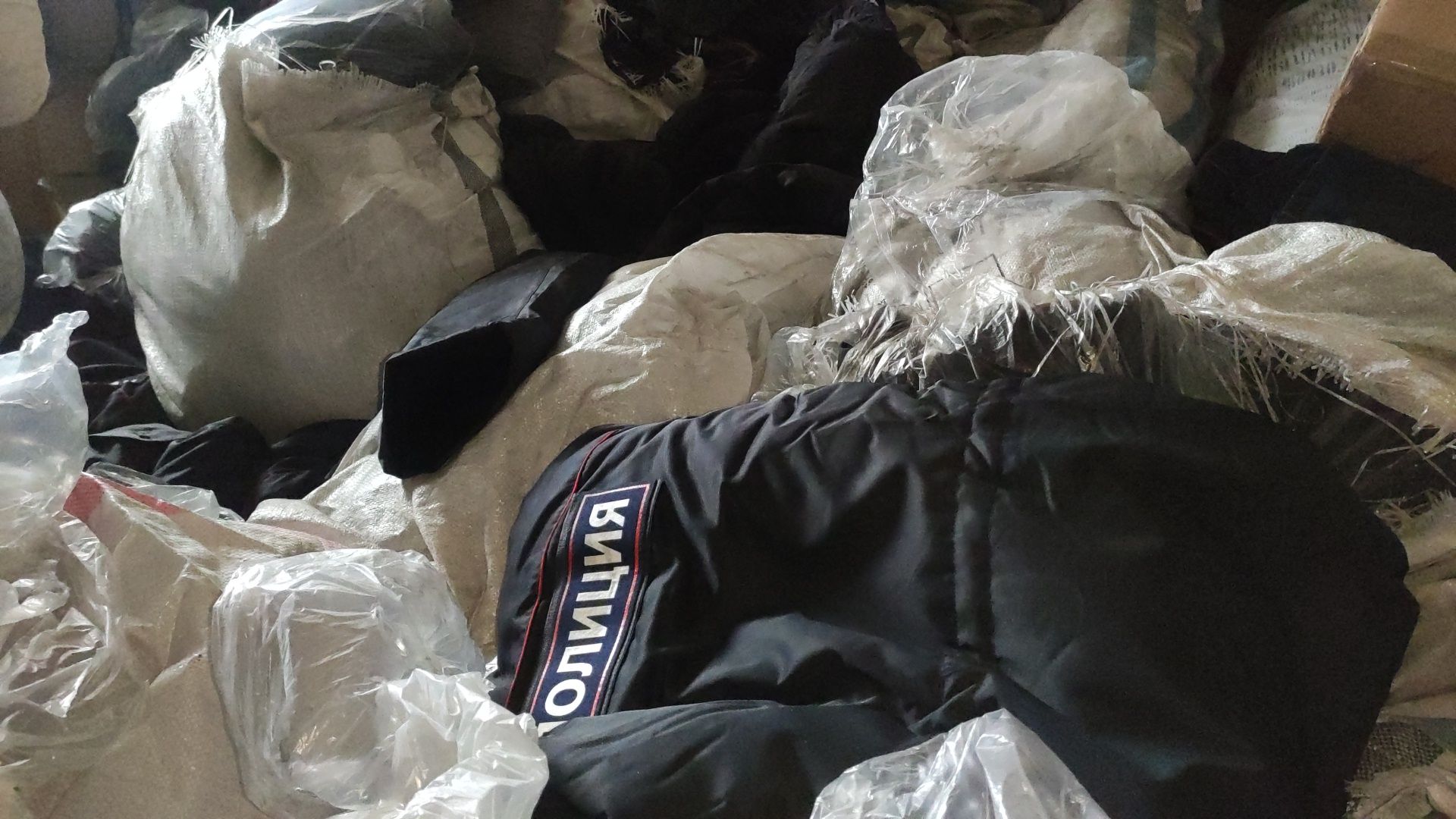 Также в одну из комнат завезли теплую одежду для "полиции" с маркировкой "фабрика города Москва". Кроме того, на полу в кабинетах много документов: водительские права, корочки полиции, даже фото украинских полицейских.