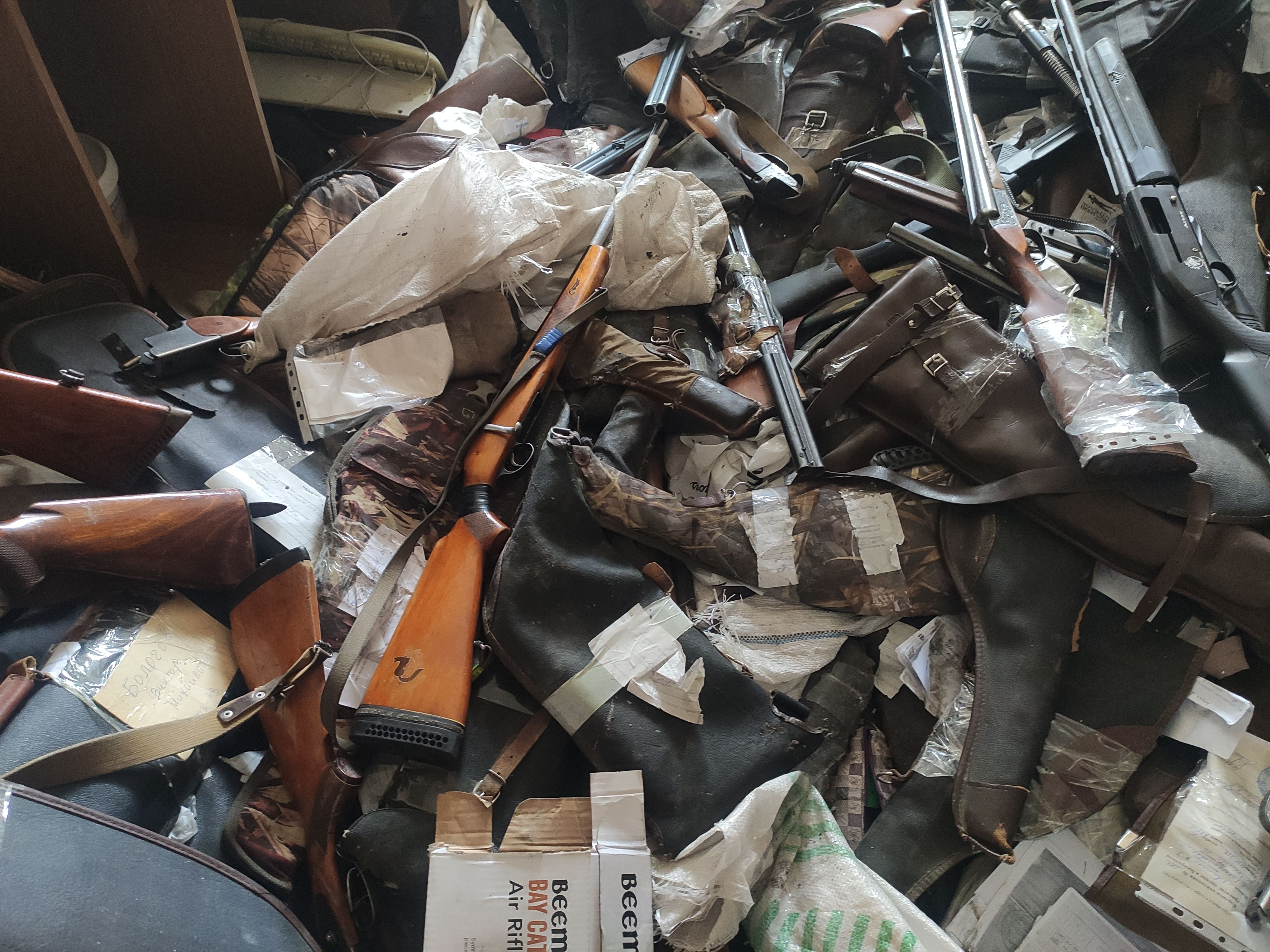 Эта комната, в которой целый склад оружия – охотничьего. Вероятно, его изымали у местных,