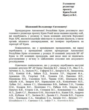 При этом прокуратура не назвала имена еще 19 крымских экс-депутатов "в связи с проведением по ним досудебного расследования".