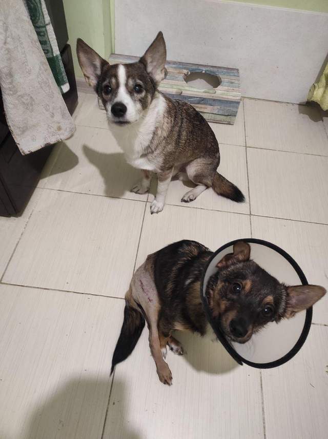 Боня – крошечная собачка, которую сбил автомобиль, у нее было 7 осколочных переломов, выпадение кишечника, гематомы. Ей сделали уже около 10 операций, но все равно одна лапа не функционирует правильно. Но благодаря ее родителям (семье, которая к этому уже взяла у нас собачку, по имени Друг) у нее все хорошо. Теперь Боню любят, лечат и помогают проходы реабилитации.