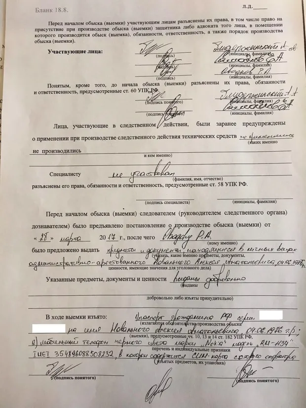 Милиционер конфисковал у Навального "важные" для следствия личные вещи. В частности, электронную книгу, телефон и шнурки черного цвета.