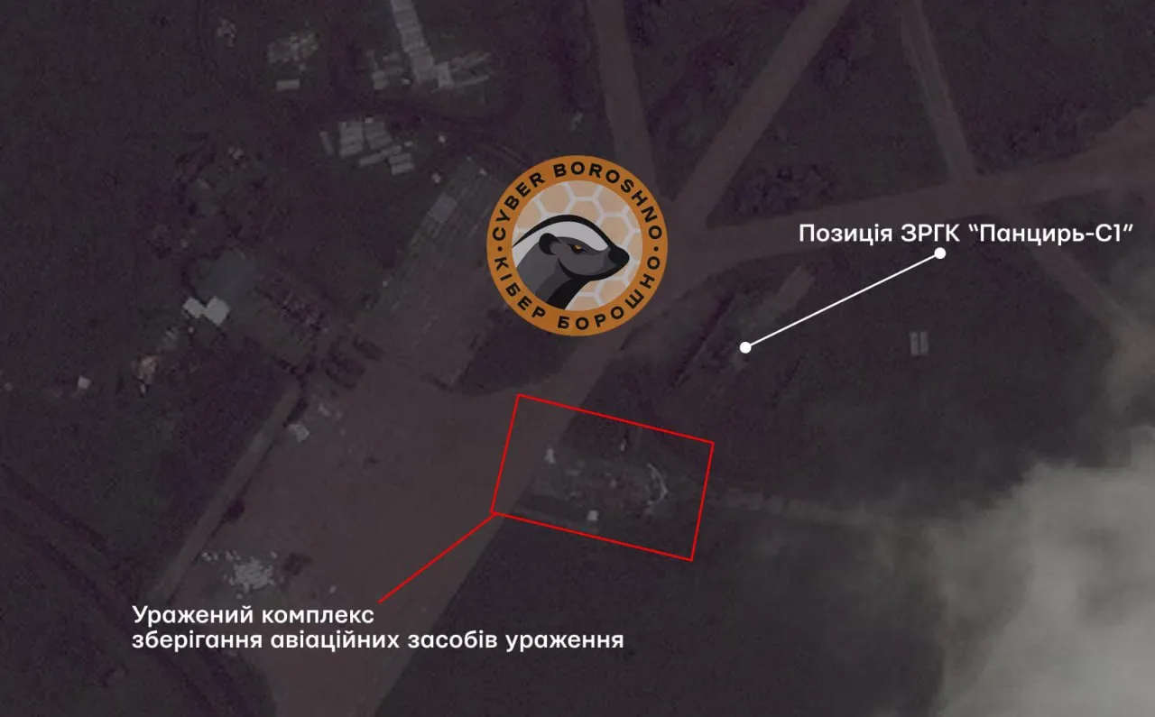 OSINT-аналитики опубликовали спутниковый снимок, на котором можно увидеть поврежденное здание на территории аэродрома после удара.