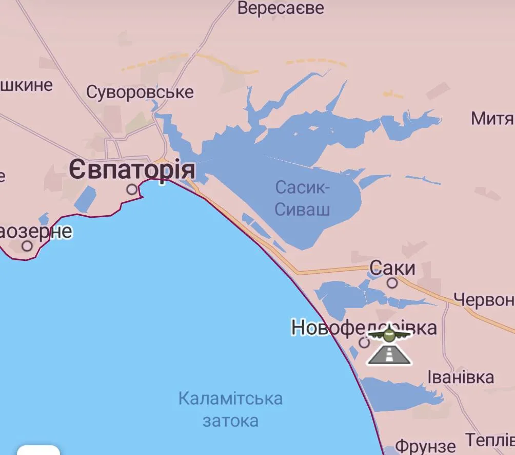 24 Канал показывает на карте, где расположен аэродром Саки, который атаковали беспилотники СБУ.