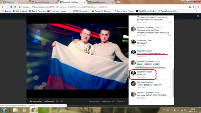 Для примера: офицер МВД из Одессы Вадим Потоцкий под фотографией друга с российским триколором спрашивает: "Когда мы уже будем там (в России)? Надеюсь – скоро",