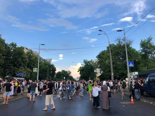 Протестующие позже перекрыли всю улицу Дегтяревскую. Они ходили по пешеходному переходу в разные стороны и просили автомобилистов, которые хотели проехать, чтобы те объехали акцию вокруг.