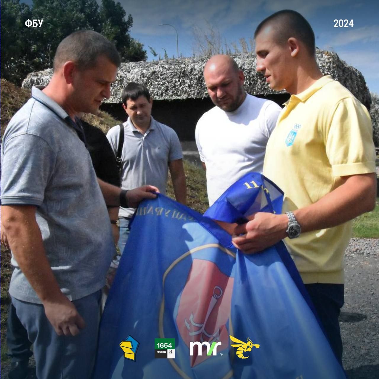 Также Александр Хижняк подписал боксерские перчатки, которые подарил командиру бригады Вячеславу Краснопольскому.