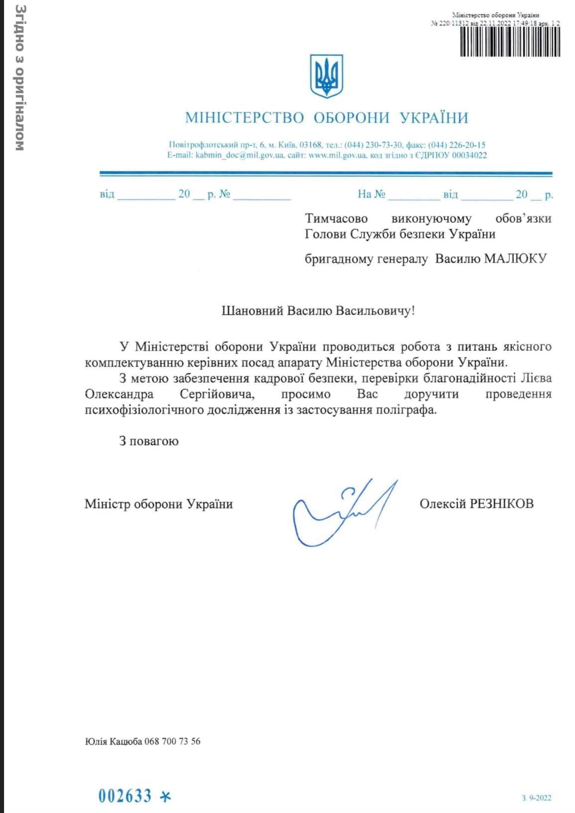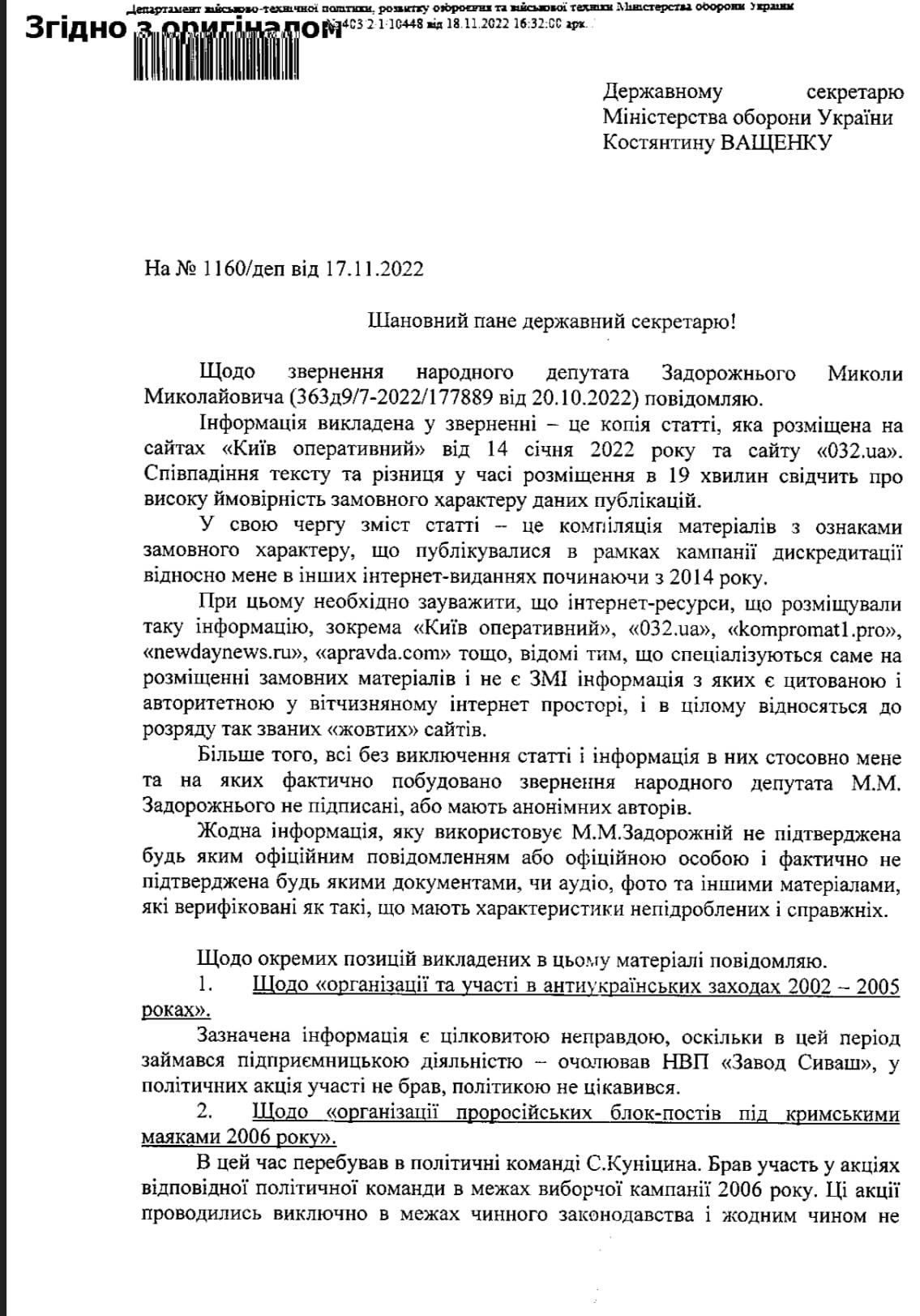 Кроме того, чиновник рассказал, что после упреков в его сторону министр обороны Алексей Резников обратился в СБУ.