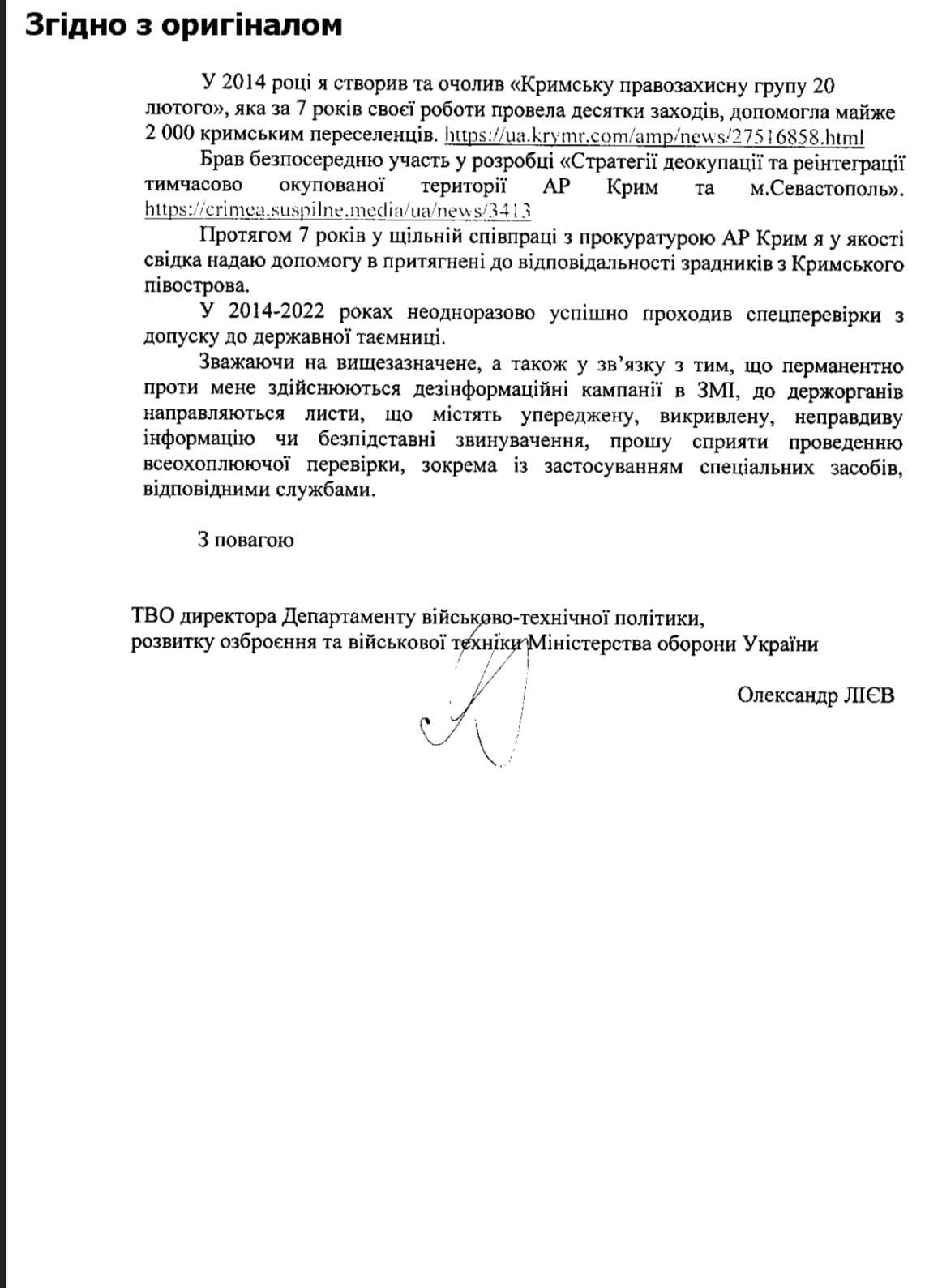 - В ответ чиновник из Минобороны сказал, что его слова о Крыме звучали в феврале 2014 года: "На том видеокомментарии корреспонденту "Громадського" я говорил о необходимости увеличения полномочий АРК и подчеркивал, что именно в составе Украины". По словам Лиева, технологи и пиарщики Деркача нарезали из этого видео необходимые кусочки.