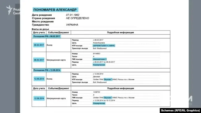 Данные пересечения границы с Россией, которые удалось получить журналистам, свидетельствуют о том, что после первого вторжения России в Украину в 2014 году народный депутат несколько раз летал в Москву якобы в коммерческих целях.