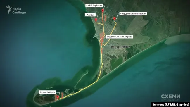 Спутниковый снимок Бердянской косы / Фото "Радио Свободы"