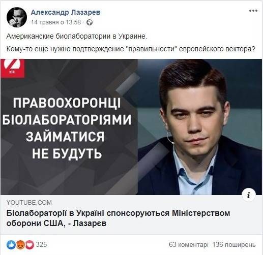 По данным Офиса Генерального прокурора, Лазарев причинил вред суверенитету, территориальной целостности, неприкосновенности и информационной безопасности Украины, помог представителям России в подрывной деятельности против Украины.