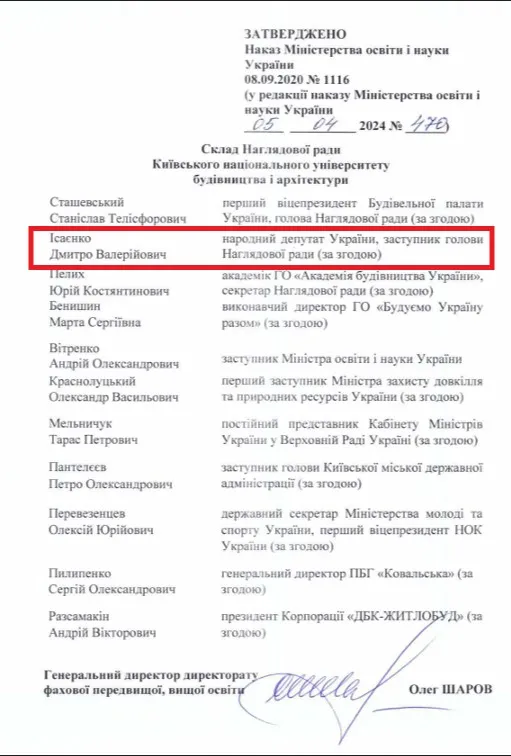 Аналитик подметил, что в составе наблюдательного совета до сих пор остается нардеп, который был избран от ныне запрещенной партии ОПЗЖ Дмитрий Исаенко. В прошлом году Исаенко НАБУ вручило подозрение по делу о незаконном завладении участком 8 гектаров в Киеве.