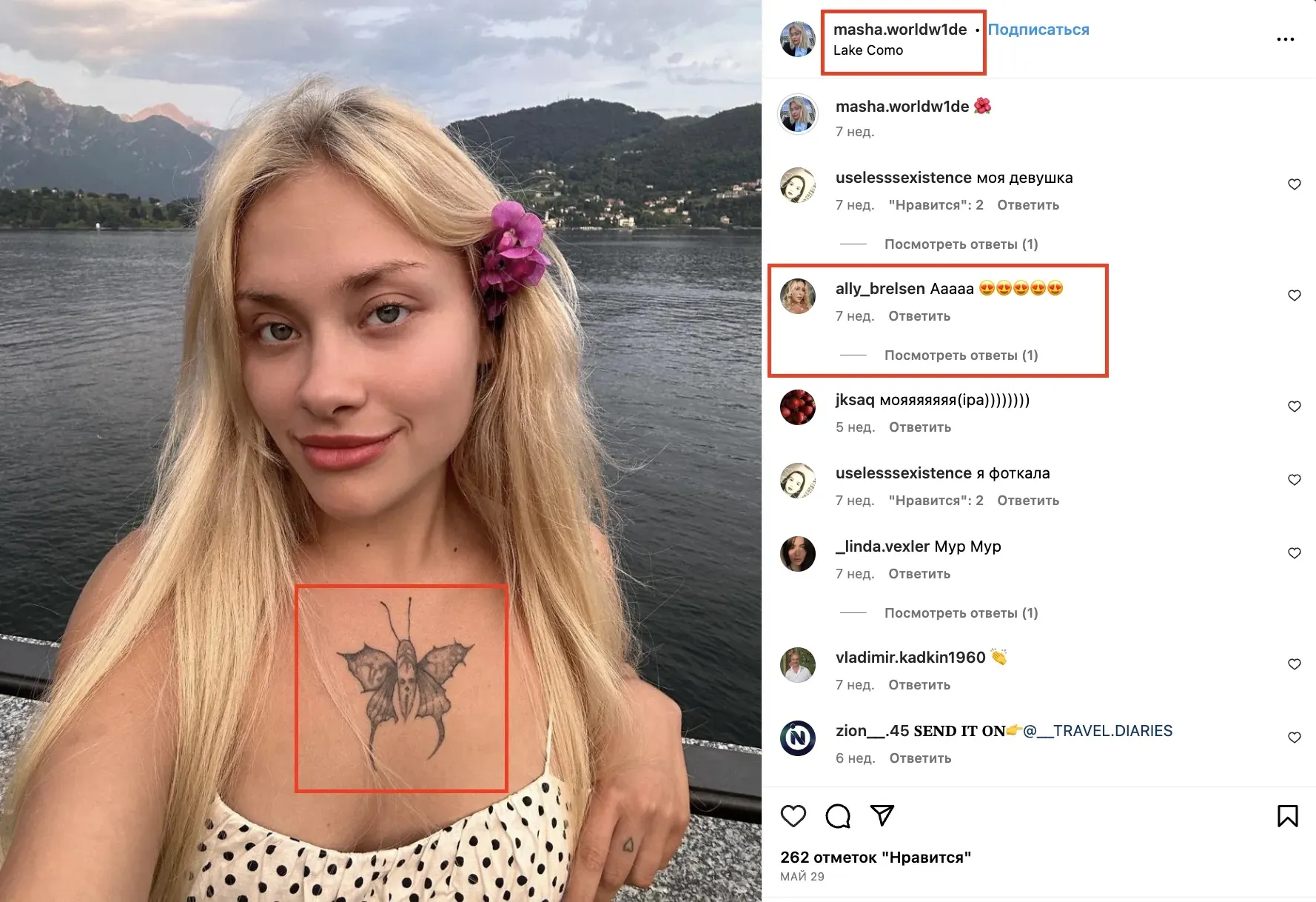 Татуировка на груди помогла ее обнаружить в сети / Скриншот с ее страницы