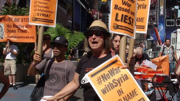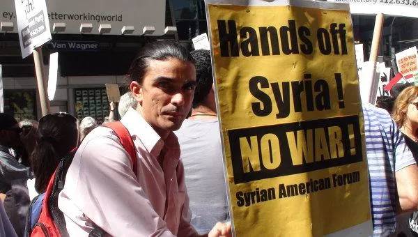 В субботу сразу несколько митингов прошли в Нью-Йорке - люди вышли с лозунгами "Нет войне с Сирией", "Сократите Пентагон, а не пособия!" , "Нет еще одной войне, замешанной на лжи".