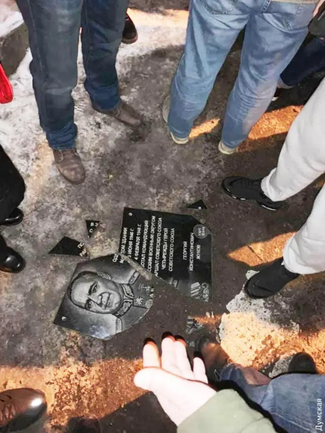 Наверняка никто из них дизайном заниматься не умеет, поэтому приходится искать человека профессионального. Но повесить доску Жукова в Одессе некоторые додумались. Правда это им не удалось. Во время акта вандализма они сами и разбили свой идол.