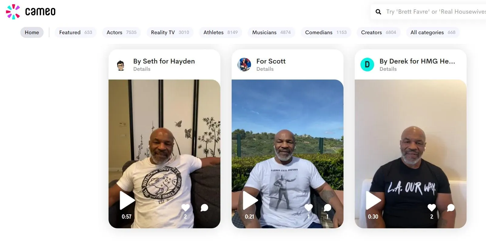 Поздравления от Майка Тайсона разным людям на Cameo / скриншот