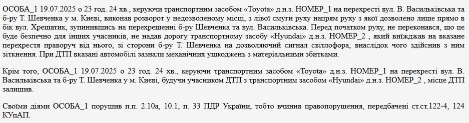 Ответ на этот вопрос все же есть. Напомним, что ранее Шевченковский суд отложил рассмотрение загадочного административного производства, зная что Молочный уже в СИЗО. На самом же деле в тот вечер Андрей Андреевич совершил сразу два ДТП! В Едином реестре судебных решений содержится октябрьское постановление судьи Осипян, где есть интересные детали о той же ночи, когда Молочный сбил женщину на переходе.