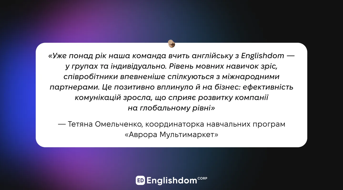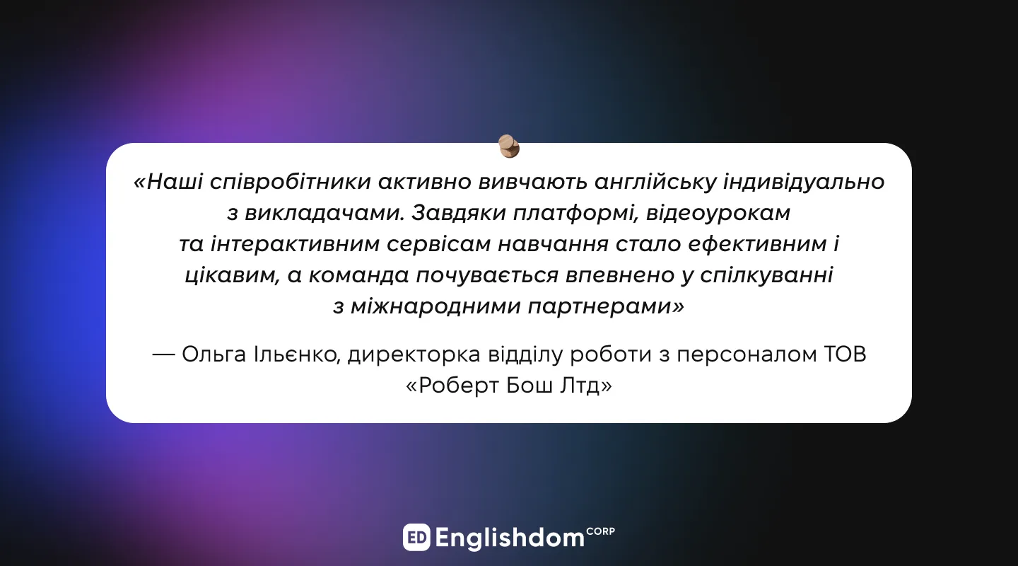 Английский – это валюта доверия, ключ к партнерствам и ресурс, который масштабирует бизнес быстрее, чем любая реклама. Компании, которые инвестируют в корпоративный английский сегодня, завтра работают без переводчиков, заключают сделки напрямую и играют в высшей лиге. Пришло время, чтобы ваша команда тоже заговорила на языке глобального бизнеса. Запишитесь на консультацию в Englishdom, где мы вместе определим цели именно для вашей компании и подберем программу, которая даст измеряемый и заметный результат.
