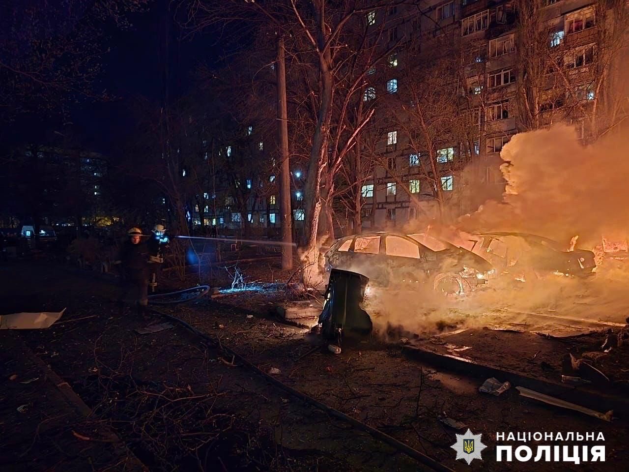 В полиции Днепропетровской области рассказали, что в результате вражеской атаки по Днепру вечером 8 апреля в жилых домах разбиты окна и уничтожено имущество. Также после атаки повреждены автомобили, десяток машин полностью сгорели.