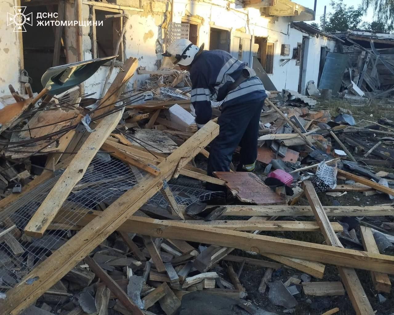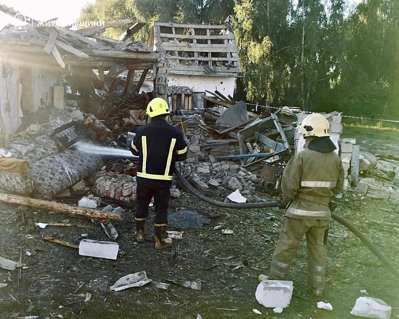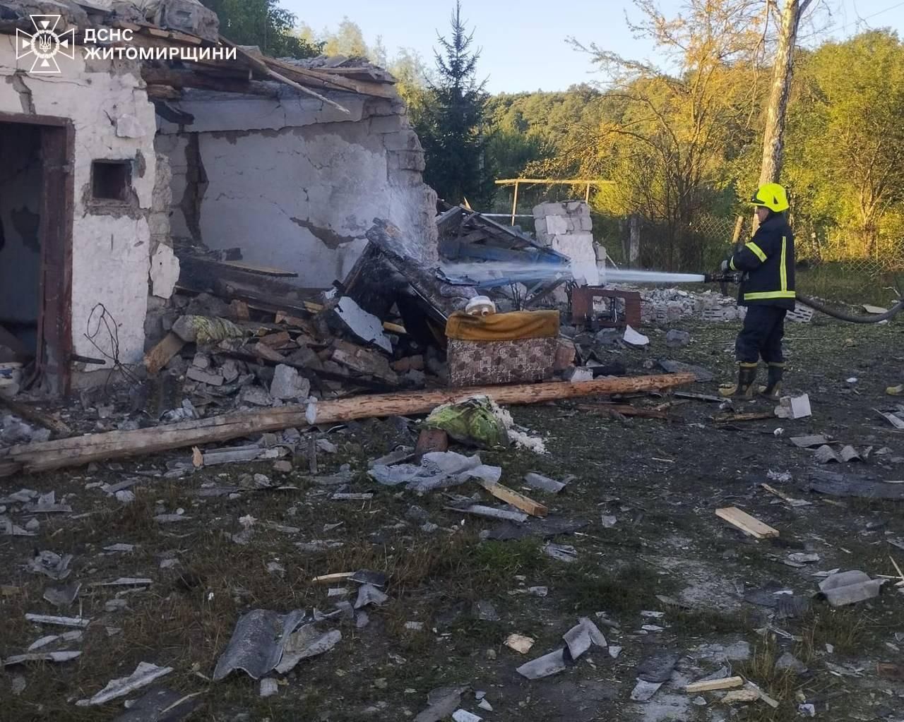 Из-за атаки на инфраструктурный объект на территории Житомирской области есть повреждения частных зданий. К тушению возгораний и разбору завалов привлекались спасатели.