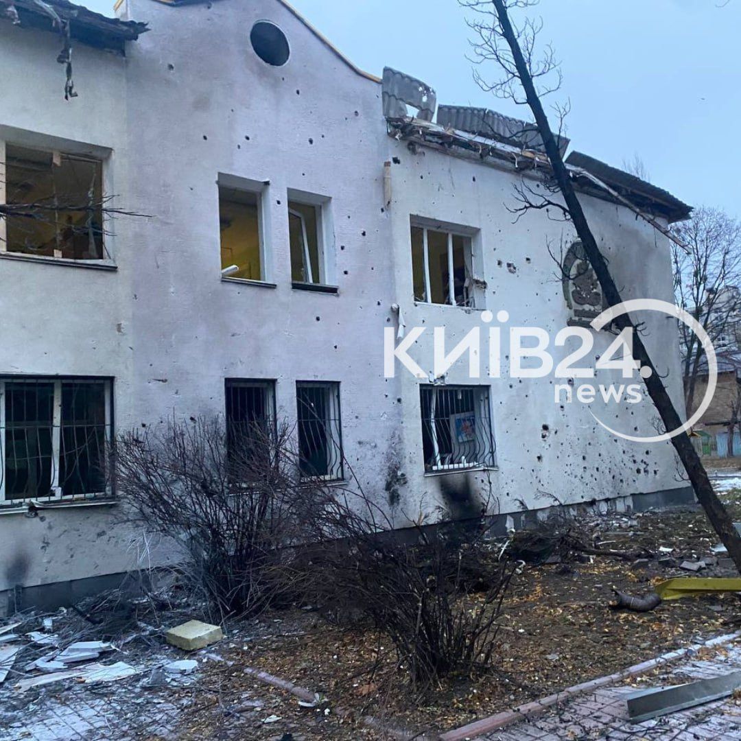 В ночь на 29 ноября во время атаки дронов на Киев обломки беспилотника упали на двухэтажное здание поликлиники, в результате чего возник пожар.
