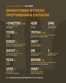 В Бельгии зафиксировали дроны над военной базой Кляйне-Брогель прошлой ночью. Полиция начала расследование. Мэр города Пер считает, что целью могли быть разведка или создание паники. Спутниковые фото подтвердили, что удар по нефтебазе в Гвардейском, что в Крыму, уничтожил или серьезно повредил 4 из 11 топливных резервуаров. Это составляет около 36% объекта. СБУ ранее провела спецоперацию в Крыму, уничтожив ЗРК "Панцирь-С2", две РЛС и поразив объекты госрезерва России. Первый заместитель главы администрации российского президента Сергей Кириенко прибыл на оккупированную часть Донецкой области Там к нему должен присоединиться начальник российского Генштаба Валерий Герасимов. Происходит это на фоне того, что Россия пригласила иностранных журналистов в Покровск и Купянск. Количество погибших в результате атаки России на Самаровский район Днепропетровской области возросло до двух человек. Как передает российская служба BBC, аэропорты Геленджика и Волгограда временно закрыли. Российские мониторы предупреждают об угрозе налета беспилотников на Волгоград, Геленджик, а также Новороссийск. По обновленным данным Днепропетровской ОГА, один человек в Самаровском районе погиб в результате обстрела. В целом там разрушен магазин и повреждены 7 жилых домов. Также пострадали 8 человек. Все госпитализированы. Половина из них – в тяжелом состоянии. Вражеский дрон атаковал гражданское авто в Середино-Будской громаде. В результате попадания пострадал 29-летний мужчина. Медики оказывают ему помощь. Есть приказ расстреливать женщин-военнослужащих, которые отказываются идти в бой. Так происходит в 51-й армии. Ранее партизаны писали, что Россия привлекает штурмовичек. А в 74 бригаде – критическая волна дезертирства. Это происходит потому, что раненым никак не помогают. За последние 3 месяца Украина заключила 20 военных контрактов на 1,4 миллиарда евро. С 1 ноября украинцы могут оформить отсрочку от мобилизации в приложении Резерв+ и ЦПАУ. Минобороны внедрило эту возможность за три месяца. Теперь не надо ездить в ТЦК, стоять в очереди или общаться с чиновниками – все быстро и удобно онлайн или в ближайшем ЦПАУ, без всякого коррупционного риска, По данным министра цифровой трансформации за первый день такие результаты: AFP пишет, что в октябре Россия выпустила по Украине 270 ракет – это самый высокий показатель за 2,5 года. Энергетики работают над скорейшим восстановлением подачи электроэнергии. Больницы и экстренные службы работают, отопление в медицинских учреждениях сохранено. Продолжается процесс перевода критической инфраструктуры на резервное питание. Там, где нет света, разворачиваются пункты несокрушимости, Юрий Федоренко, командир полка "Ахиллес", рассказал, что на каждого российского пехотинца тратят минимум по два ударных дрона – 50 тысяч в месяц. Украинские солдаты должны убивать или тяжело ранить до 25 тысяч российских солдат в месяц. Это примерно столько, сколько новых рекрутов мобилизует Россия ежемесячно, Вечером враг ударил по Сумах и Павлограду. По последнему целились дронами и баллистикой. Главком снова побывал на направлении. Он заверил, что оборона агломерации будет поддержана дополнительными подразделениями, вооружением, техникой, в частности беспилотными системами и средствами БПЛА. Многотысячная группировка противника про