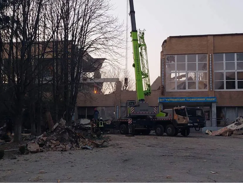 Так выглядят поврежденные общежития и учебный корпус профессионального лицея в Ржищеве Киевской области, которые ночью атаковали российскими дронами.