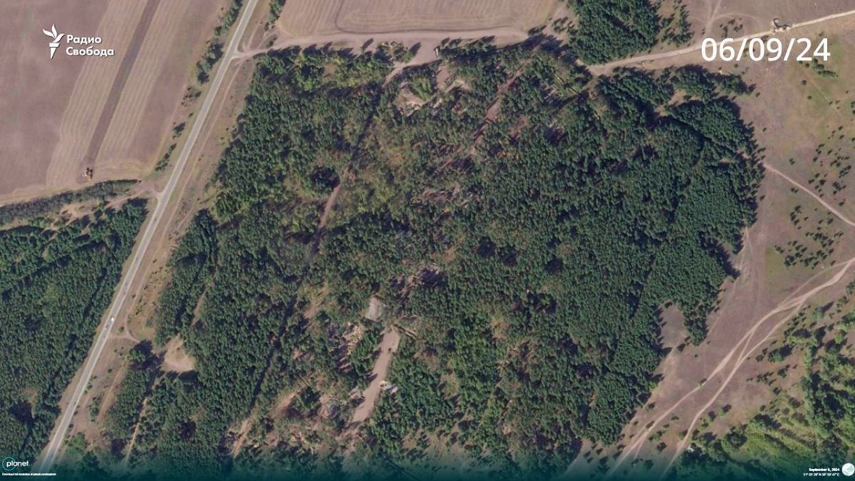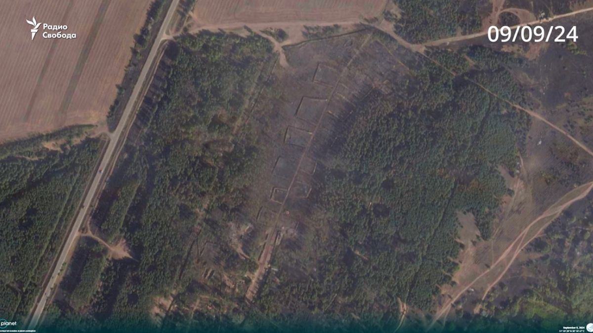 Журналисты сравнили спутниковые снимки от 6 и от 9 сентября – до и после атаки беспилотников соответственно. Именно на втором снимке, когда огонь потушили, можно увидеть точное место хранения боеприпасов.