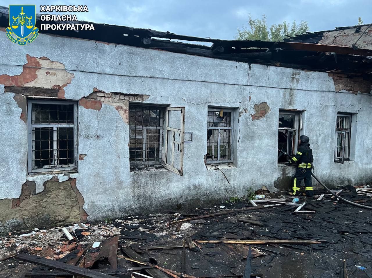 В результате попадания дрона в Харькове произошло возгорание одноэтажного неэксплуатируемого здания на площади около 300 квадратных метров. Рядом повреждены СТО, многоквартирный дом, нежилое и административное здание, остановка общественного транспорта.