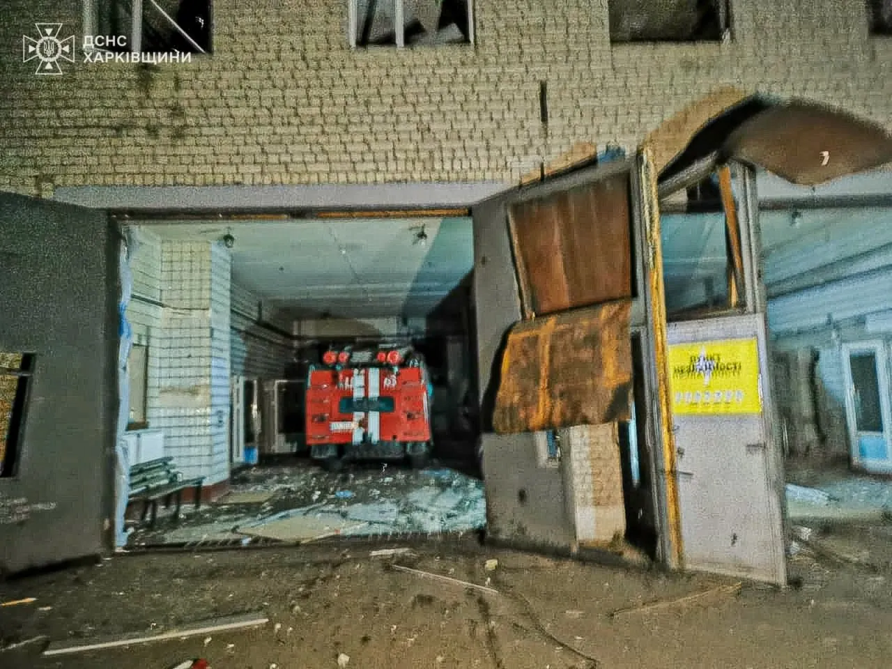 Одно из попаданий пришлось непосредственно в здание пожарно-спасательного подразделения. В результате обстрела треть здания пожарного депо была разрушена. Кроме того, повреждены окна и ворота фасадной части, внутренние перегородки и двери здания,