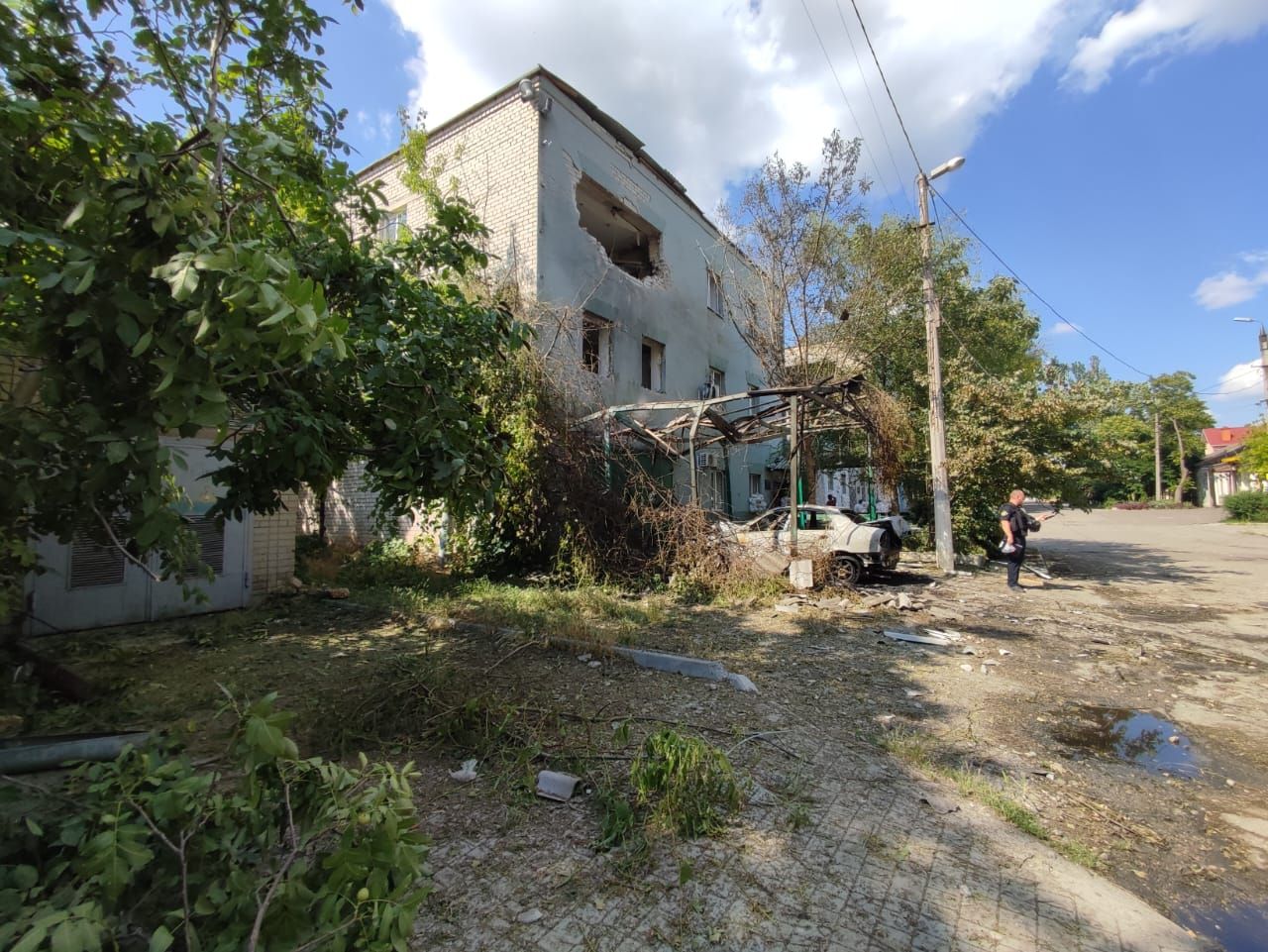 - Из-за обстрелов повреждены медучреждение, детсад, супермаркет, жилые дома, автомобили, линии электропередач.