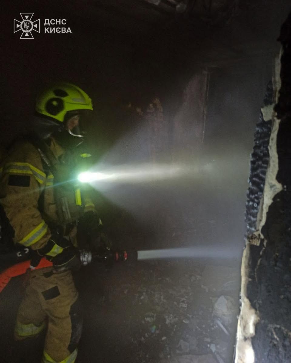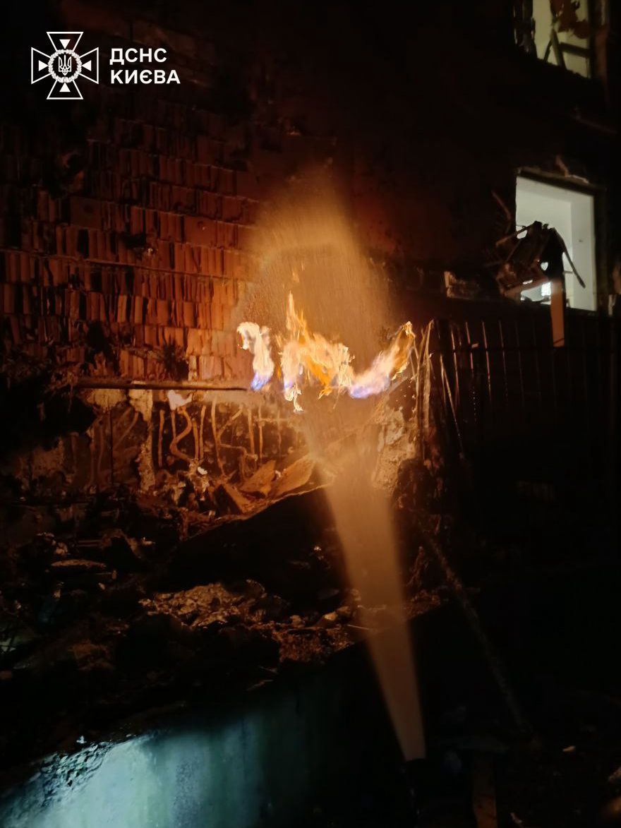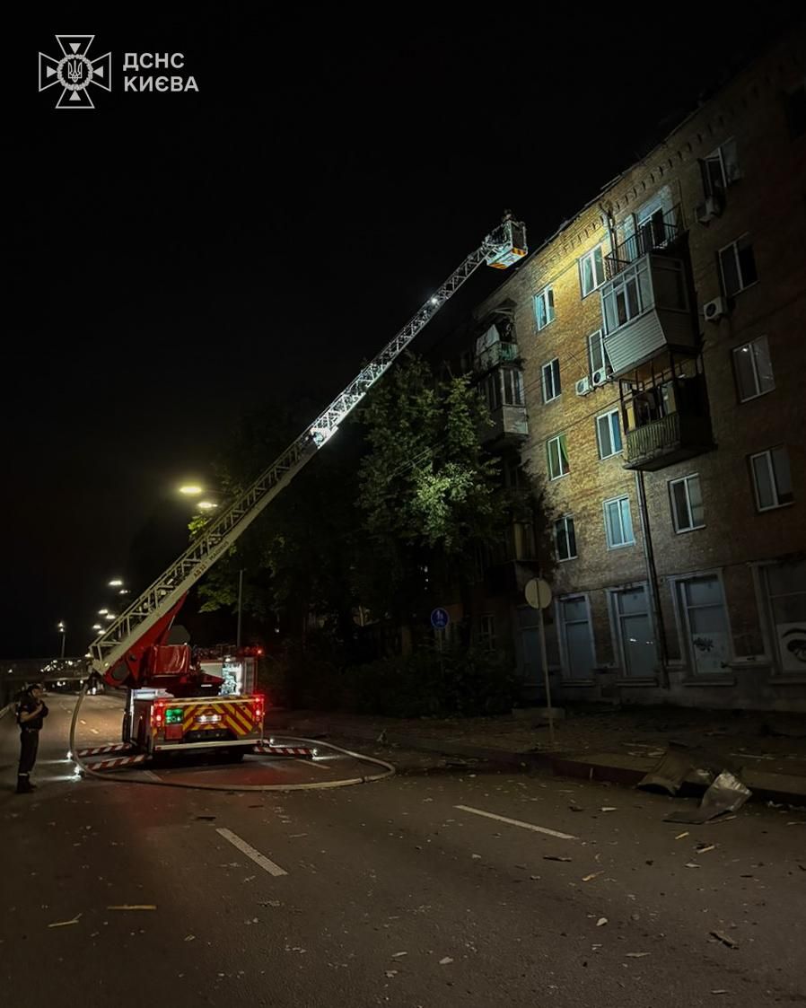 Этой ночью Киев также подвергся массированной атаке российских дронов. Спасатели обнародовали кадры последствий.