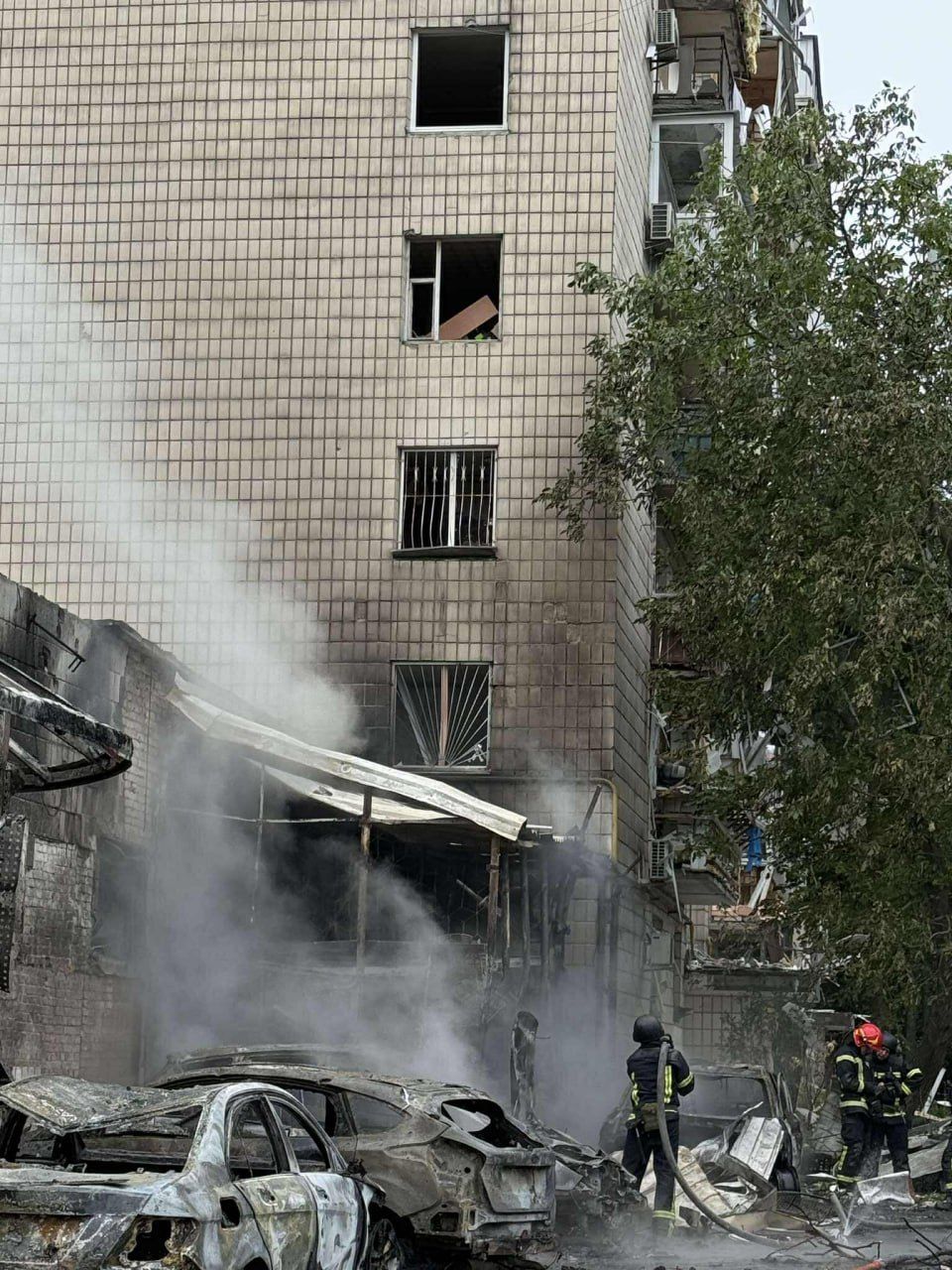 Удар по многоэтажке в Киеве / Фото из соцсетей Клименко, Ткаченко, ГСЧС